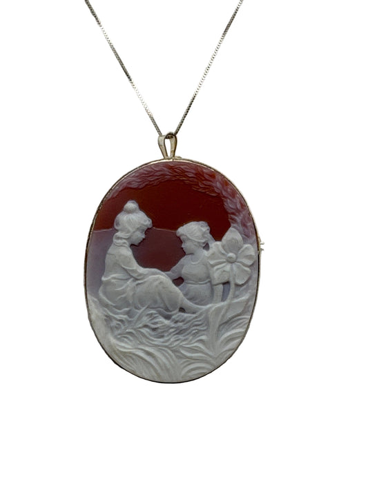 Spilla Pendente in Agata raffigurante Madre Figlia