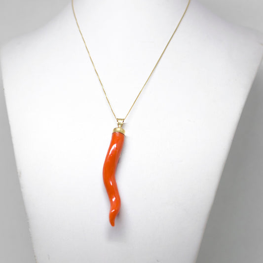 Pendente in Corallo e Oro 'Cornetto Portafortuna'