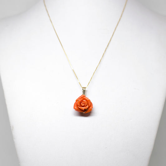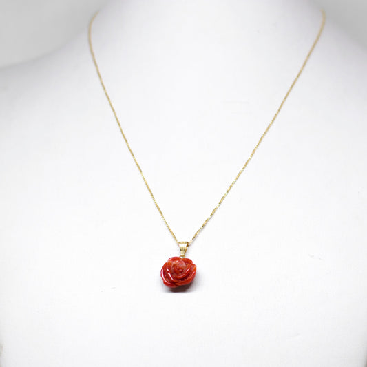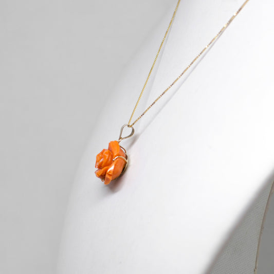Pendente in Corallo e Oro 'Rosa Scolpita'