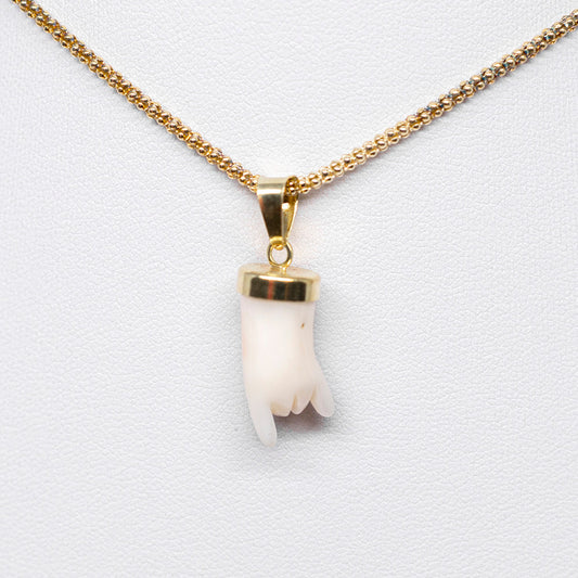 Pendente Mano a Corna in Corallo Bianco e Oro
