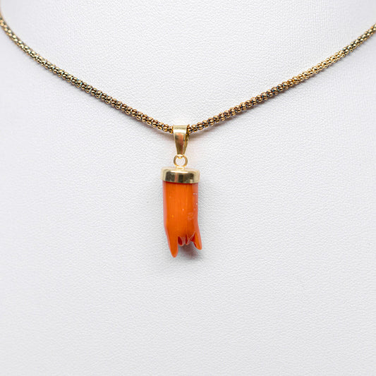Pendente Mano a Corna in Corallo Arancione e Oro