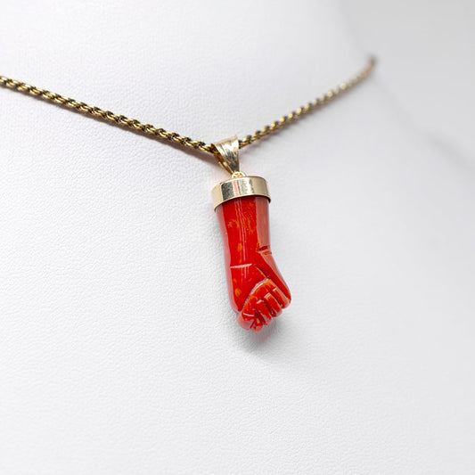 Pendente Mano a Corna in Corallo Rosso e Oro