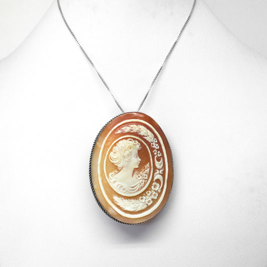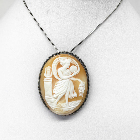 Pendente Spilla Cammeo Antico Donna con Arpa