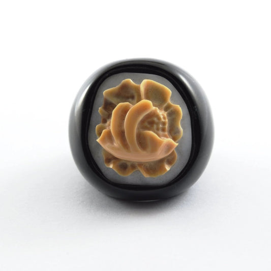 Anello Cammeo in Onice con Rosa In Rilievo