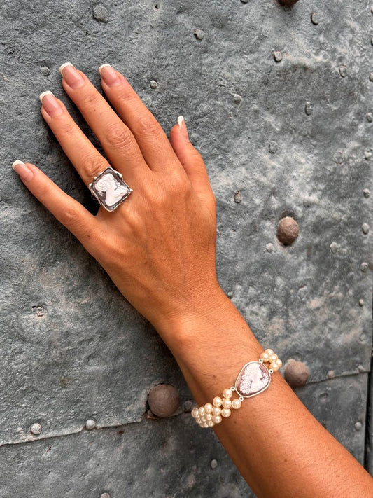 Anello Cammeo Artistico Profilo di Donna con Dettaglio della Mano