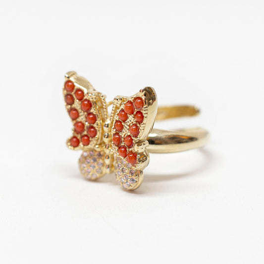 Anello Corallo Zirconi Farfalla