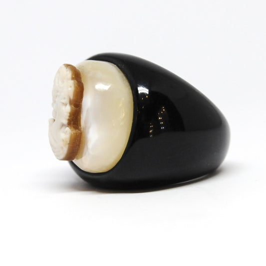 Anello Cammeo Incisione su Madreperla Profilo Donna