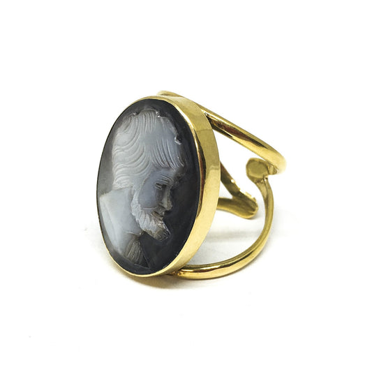 Anello Cammeo in Madreperla incisione Volto Uomo