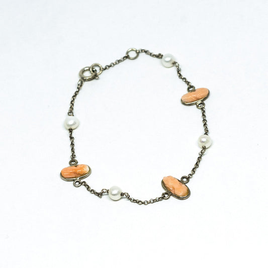 Bracciale con Cammei su Corallo Rosa Profilo Donna