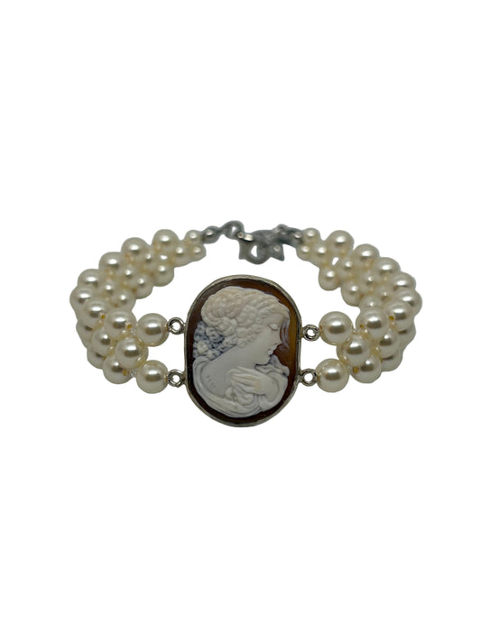 Bracciale in Cammeo e Perle incisione "Profilo di Donna"