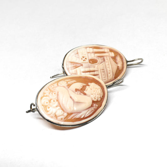 Orecchini Cammeo Artistico Profilo Donna con Dettaglio della Mano