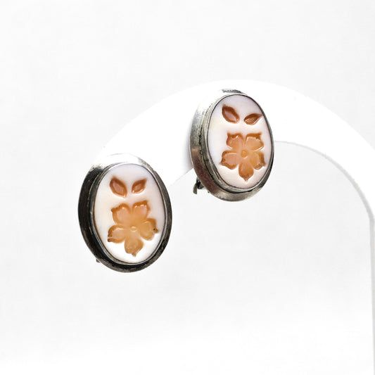 Orecchini Cammeo Artistico Profilo donna con Dettaglio della mano e Fiori