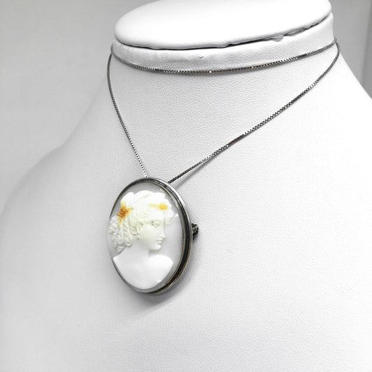 Pendente Spilla Cammeo Artistico Profilo Donna