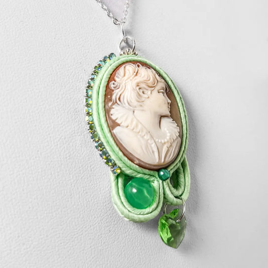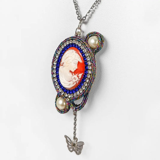 Collana in Argento con Pendente in Soutache con Cammeo Profilo Donna