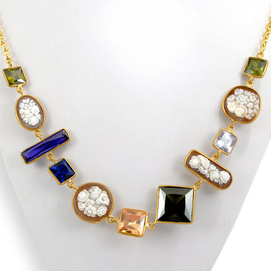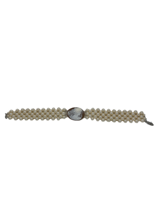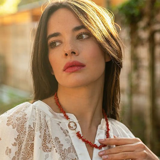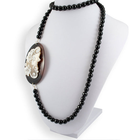 Collana in Pietra Lavica con Cammeo Profilo Donna