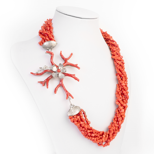 Collana di Corallo Rosso Sardegna con Cammeo Artistico Profilo Donna