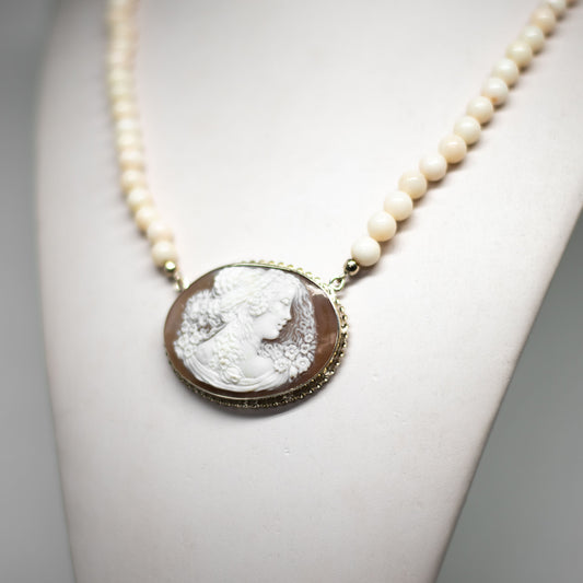 Collana in Corallo Rosa con Cammeo Artistico Profilo di Donna