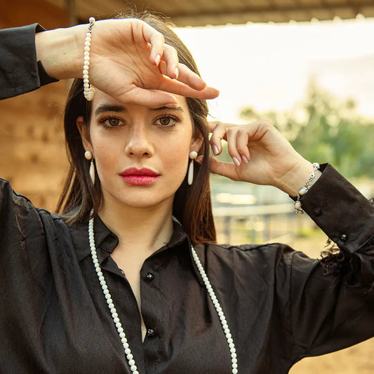 Collana Perle Doppio Filo con Cammeo Profilo Donna