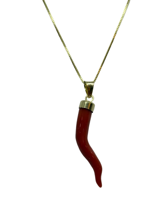 Collana con Pendente in Corallo 'Cornetto Portafortuna'