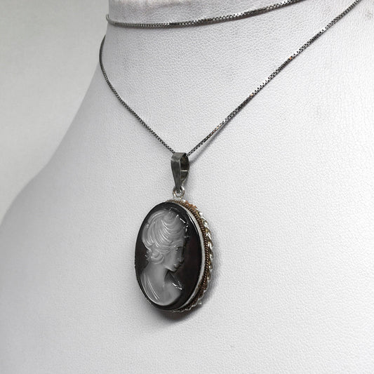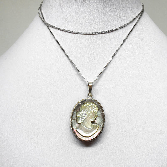 Pendente Spilla Cammeo su Madreperla Profilo Donna