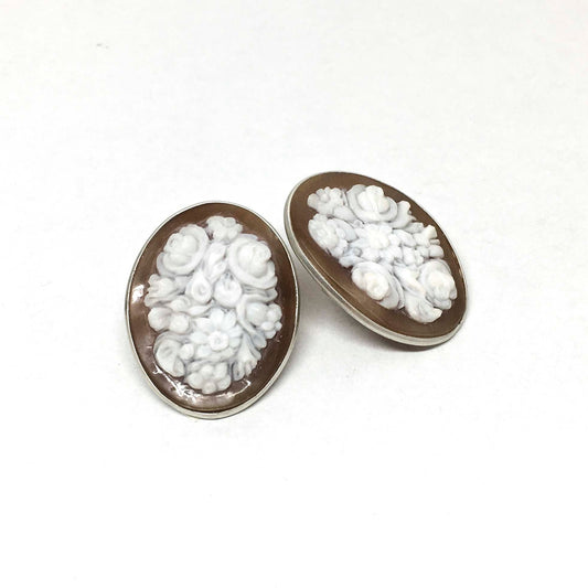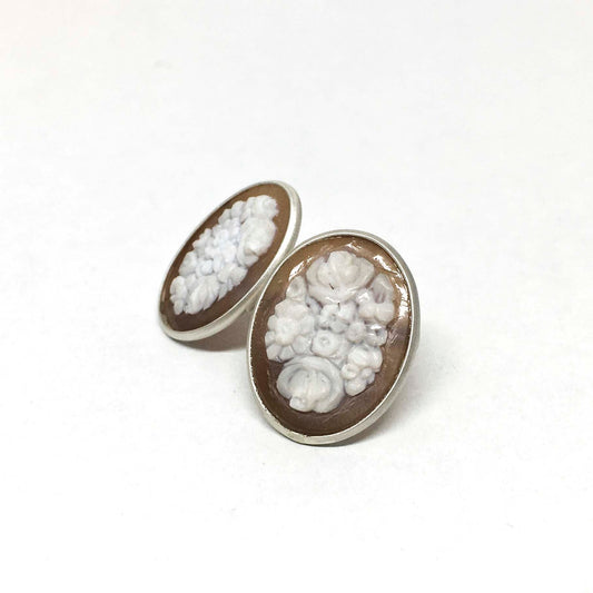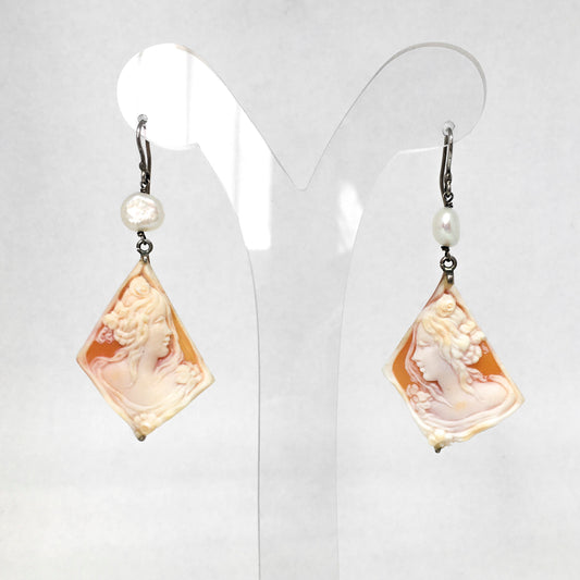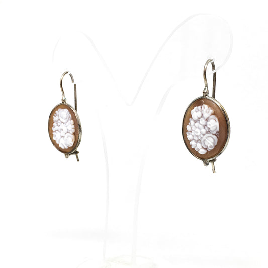 Orecchini Cammeo Artistico Profilo Donna con Dettaglio della Mano