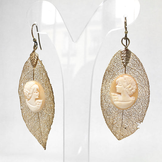 Orecchini Cammeo su Foglia d'Oro Profilo Donna