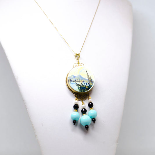 Pendente agata e pasta turchese dipinto mano