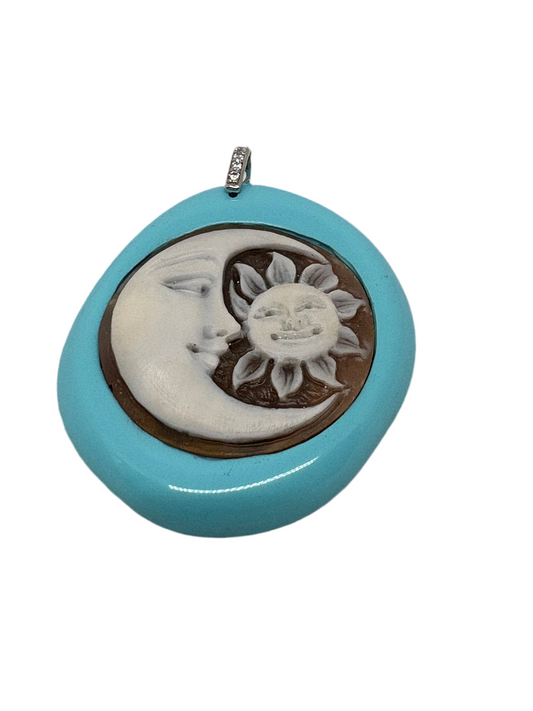 Pendente in Cammeo e Pasta di Turchese 'Sole e Luna'