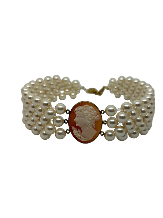 Bracciale in Cammeo e Perle incisione "Profilo di Donna"