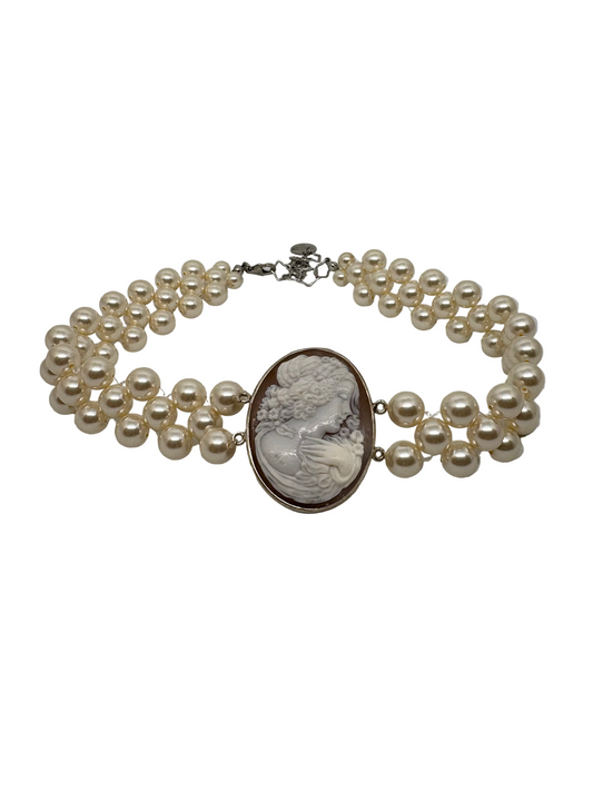 Girocollo in Perle e Cammeo incisione "Profilo di Donna"