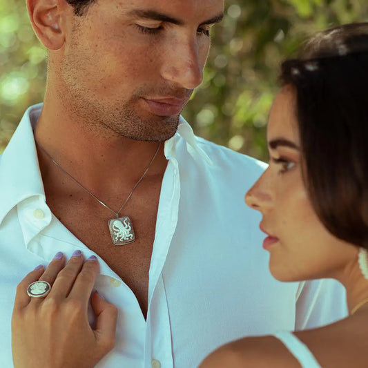 Pendente Cammeo Artistico Profilo Donna con Mano