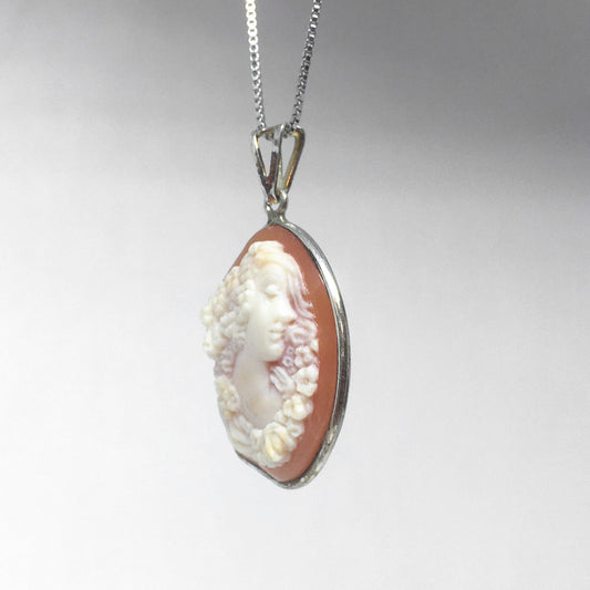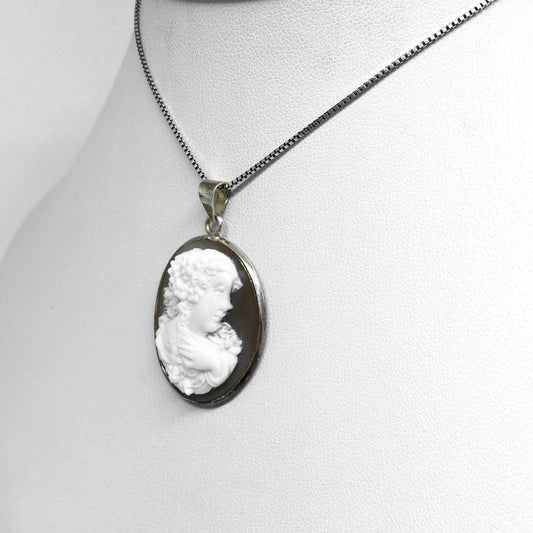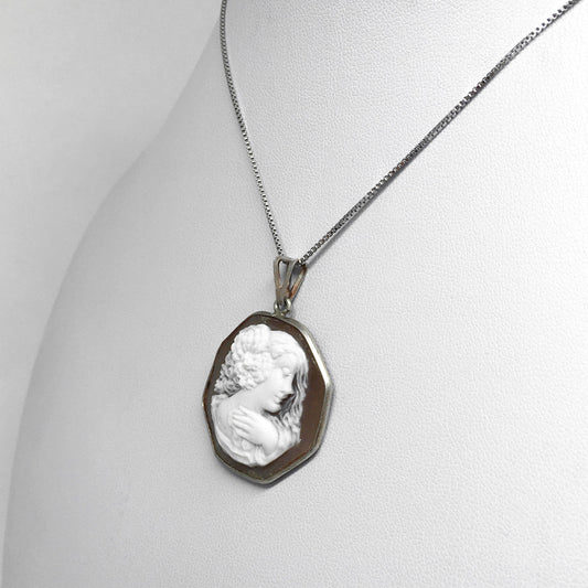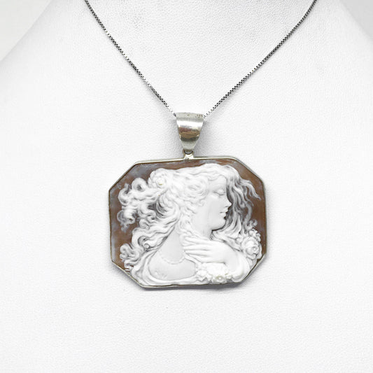 Pendente Cammeo Artistico Profilo Donna con Dettaglio della Mano