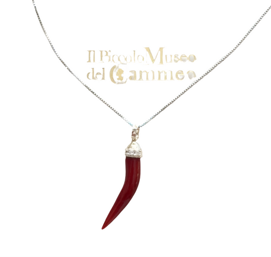 Pendente Cornetto Portafortuna in Corallo Rosso e Zirconi
