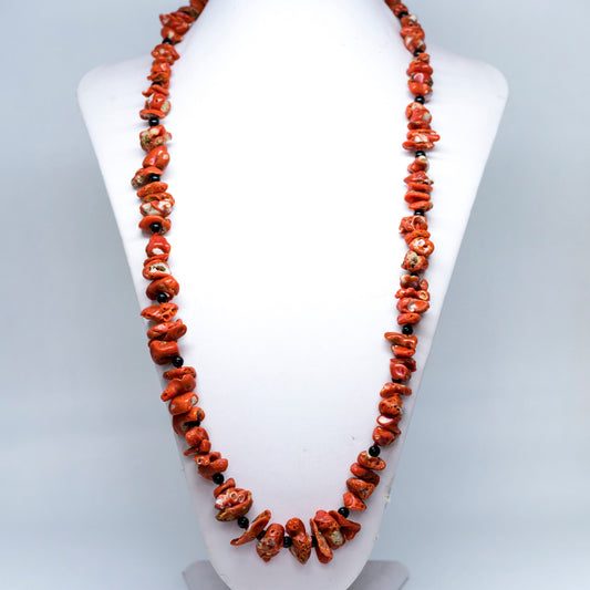 Bracelet with Pearls, Coral and Faceted Black Agate