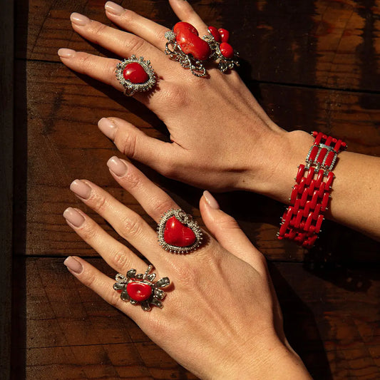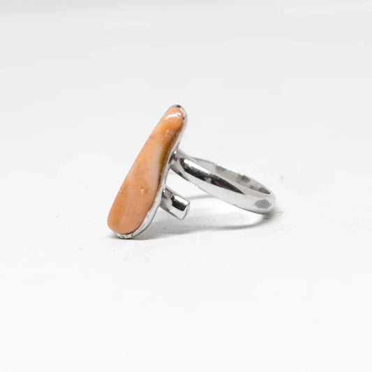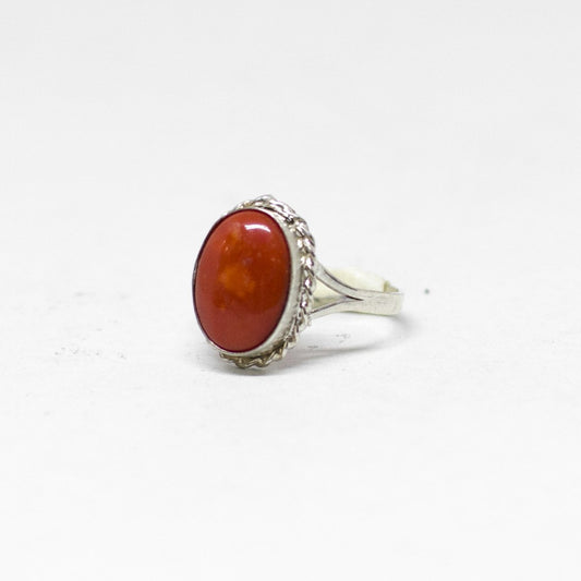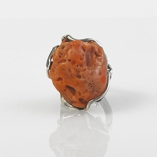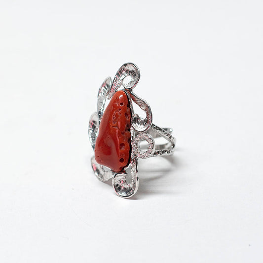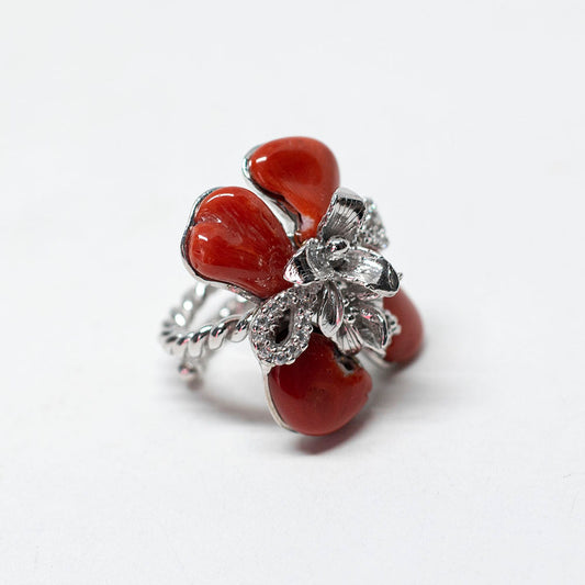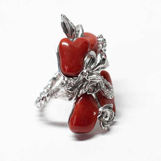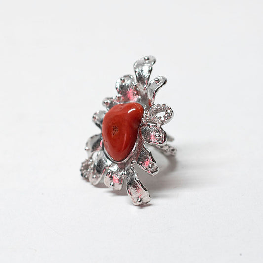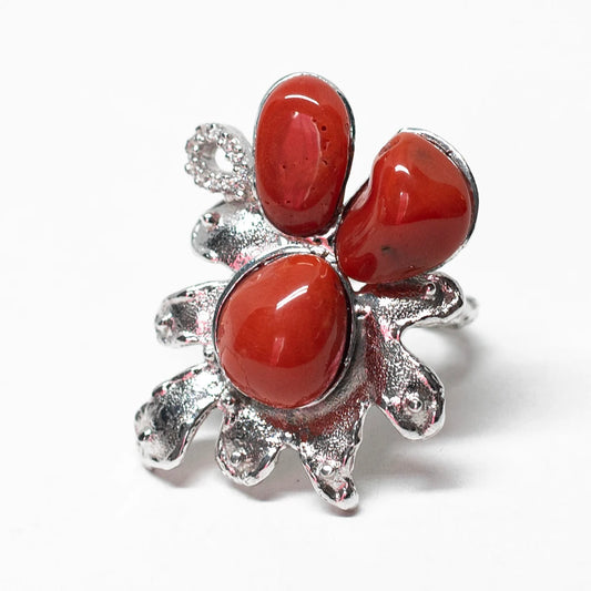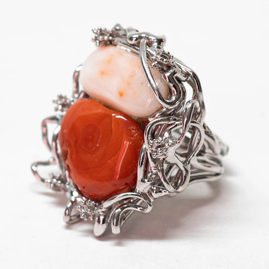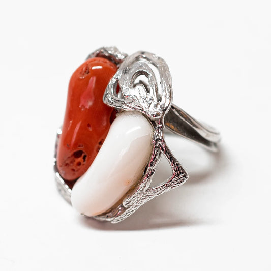 Red Coral and Pink Coral Ring with Lost Wax Silver