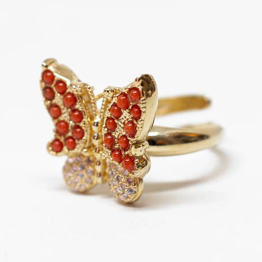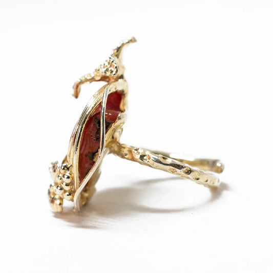 Red and Pink Coral Ring with 925 Silver Lost Wax Processing