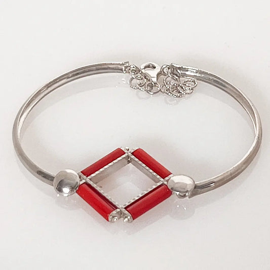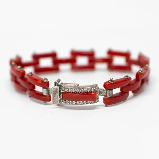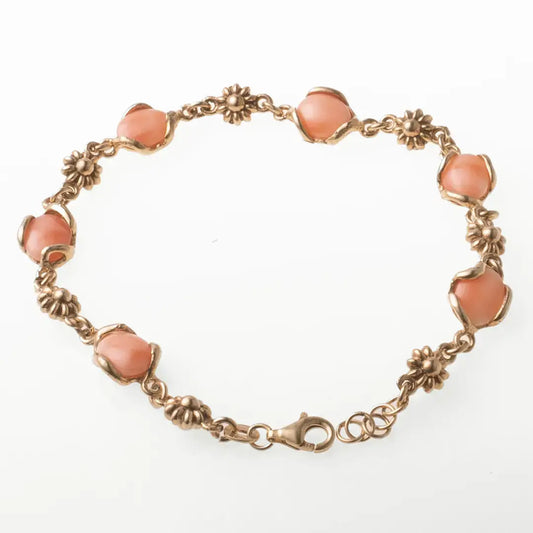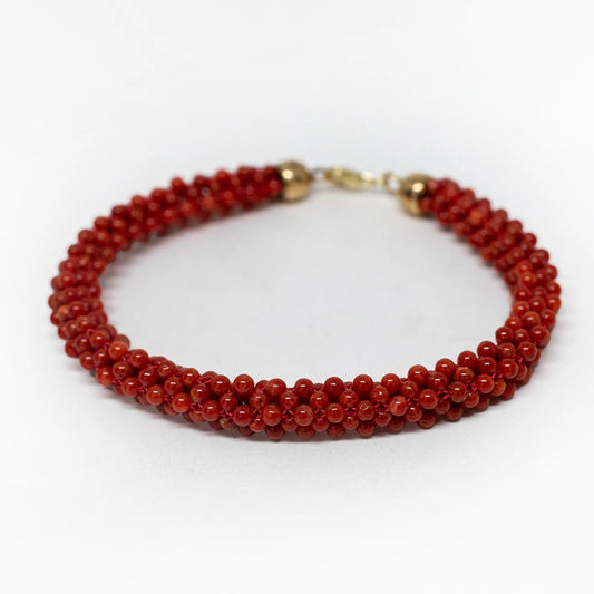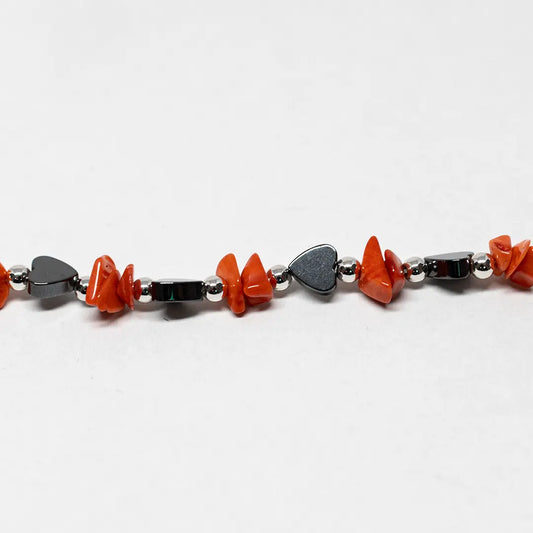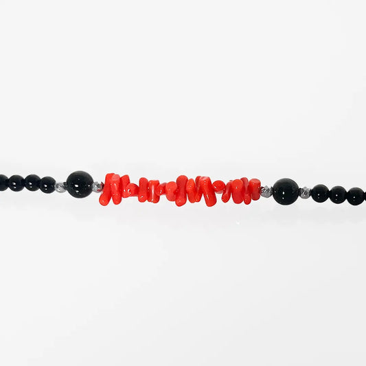 Coral Bracelet Interspersed with Silver Micro Spheres