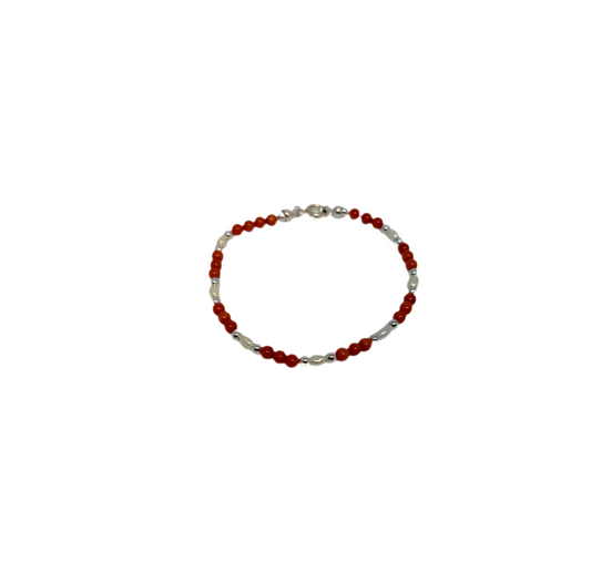 Torchon Bracelet in Mediterranean Coral, Agate and Onyx