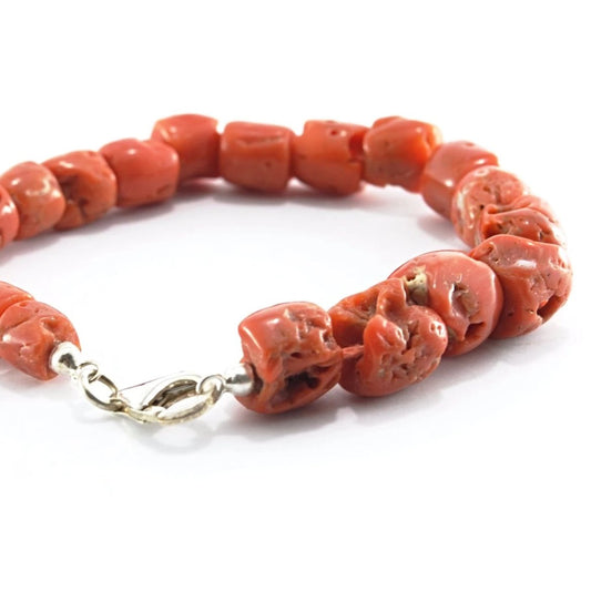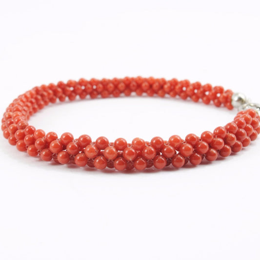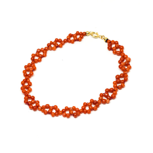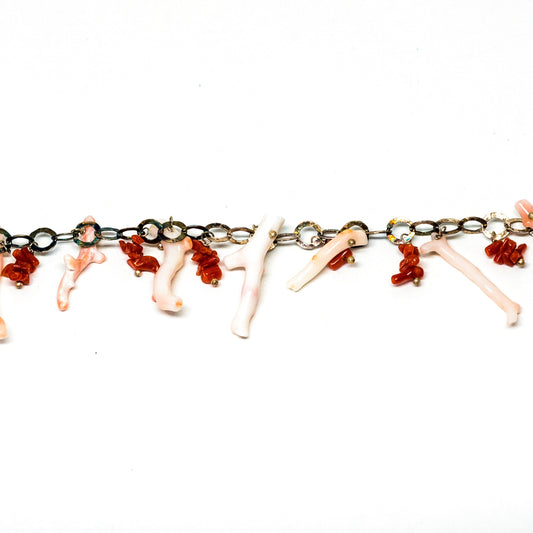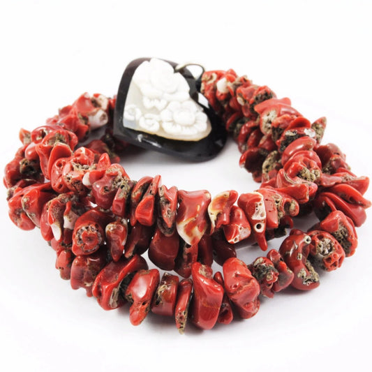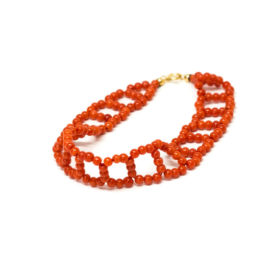 Bracelet in Black Agate, River Pearls and Orange Coral