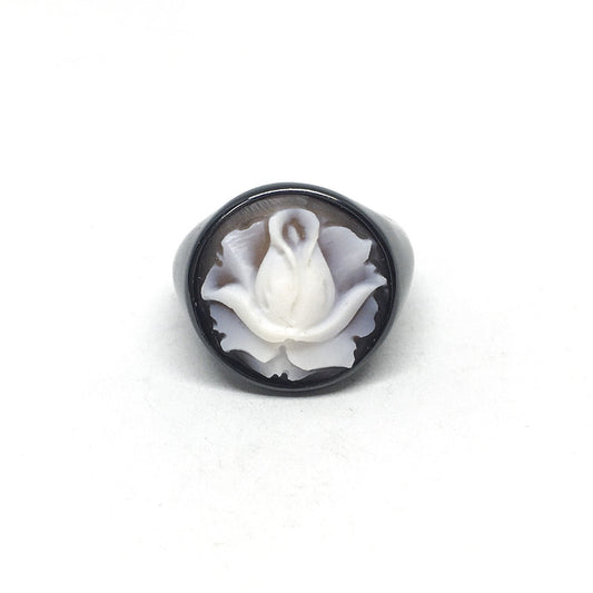 Italian Cameo Ring Very Mary Cameo Engraving Flower