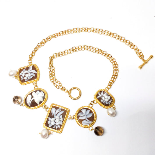 Italian Cameo Necklace Flowers Cameo