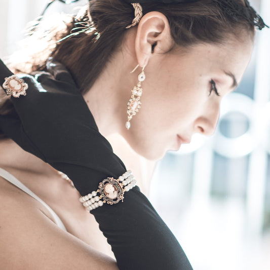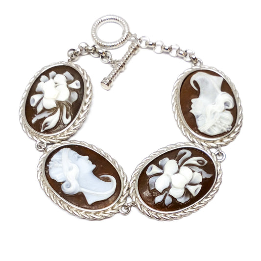 Italian Cameo Bracelet Cameo with Woman Face and Flowers