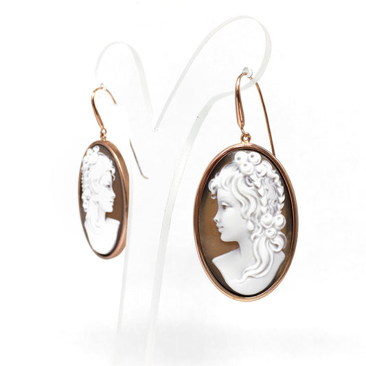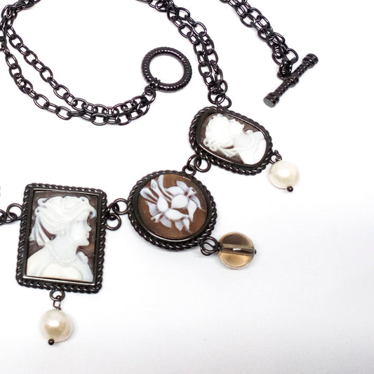 Italian Cameo Necklace Cameo Woman Face and Flowers