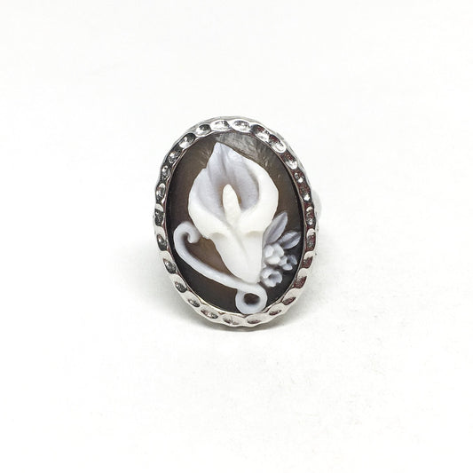 Italian Cameo Ring Very Mary Cameo Engraving Flower