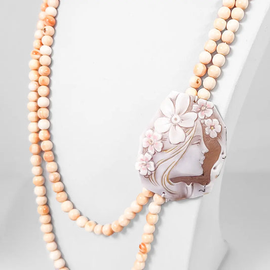 Double Strand Pearl Necklace with Cameo Profile Woman