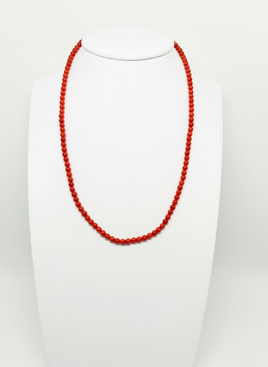 Red Coral Necklace Interspersed with Silver Micro Spheres