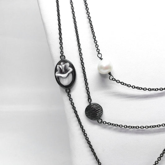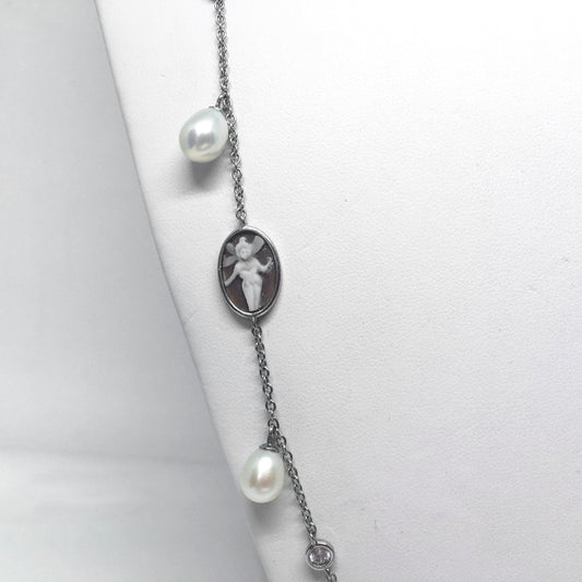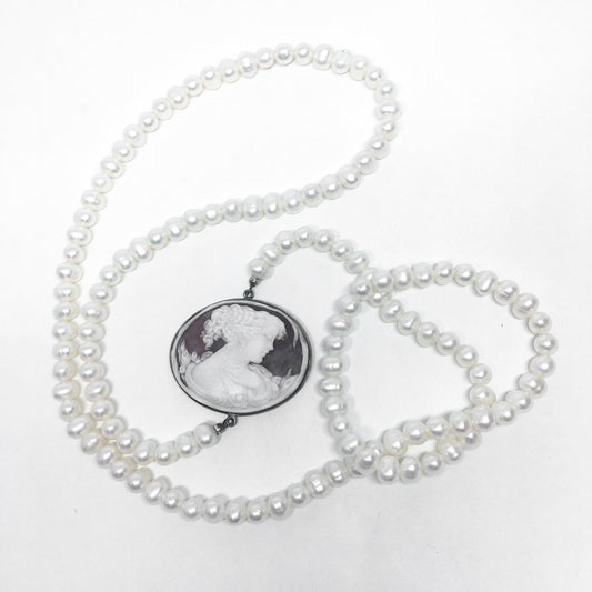 Arianna Italian Cameo Necklace Cameo with Trilly Pearls