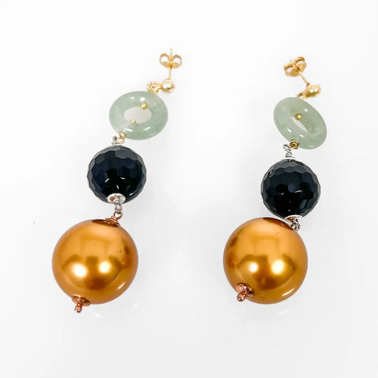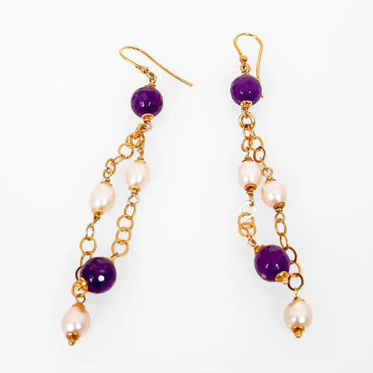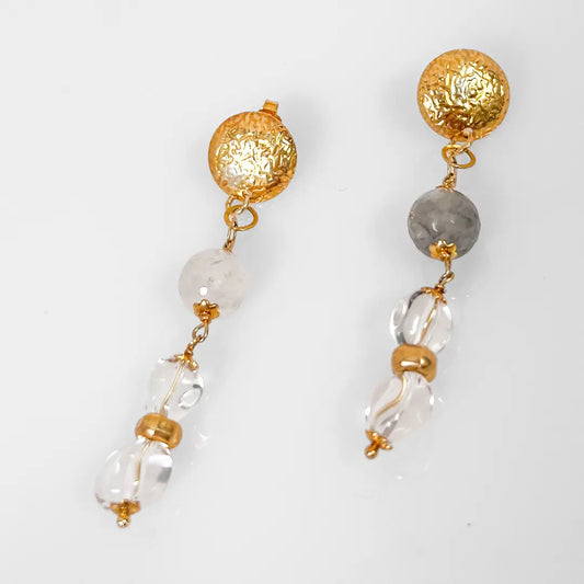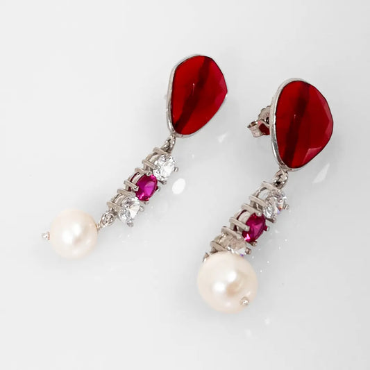 Fantasy Silver Earrings with Stone, Crystals and Pearls