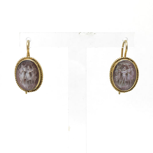 Orecchini in Cammeo Antico incisione "Profilo di Donna"