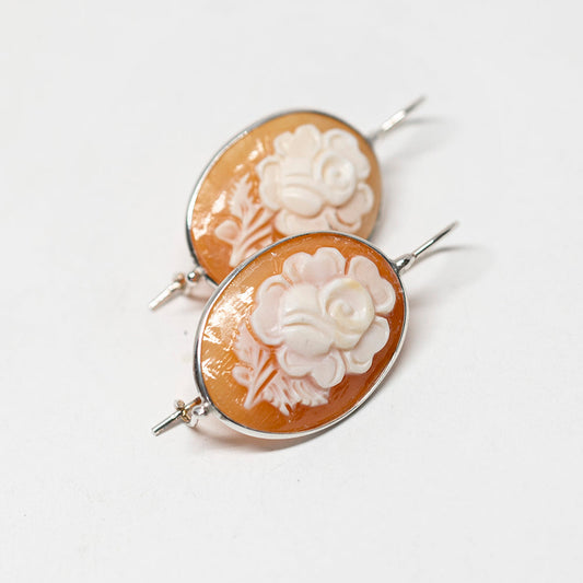 Orecchini in Cammeo Artistico incisione "Fiori"